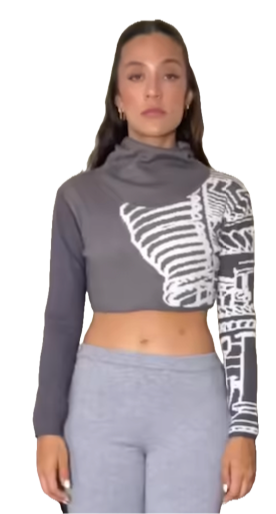 confeccionado en tejido de punto color gris con un print en color crudo de turbina, tiene gorro, mangas largas, el print abarca parte de una manga, el tejido tiene una suavidad que te hace sentir muy comoda, puedes utilizarla con unos jeans o con nuestros pantalones de punto en color gris para un total look.
